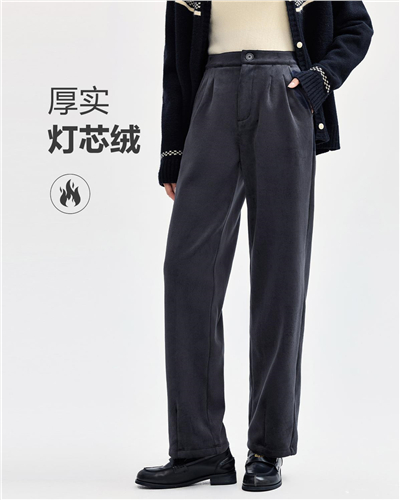加绒灯芯绒压褶半松紧腰针织休闲裤