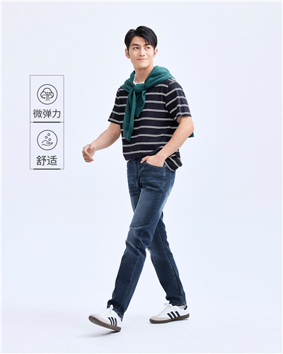 猫须磨白微弹印花五袋款中腰牛仔长裤