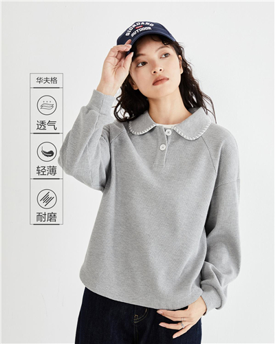 华夫格针织拼色勾线宽松长袖POLO卫衣