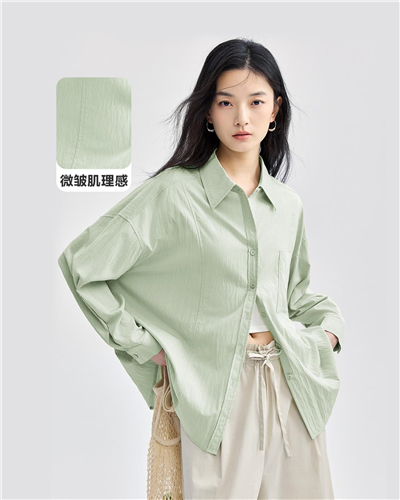 后幅绑带收腰肌理梭织长袖休闲衬衫